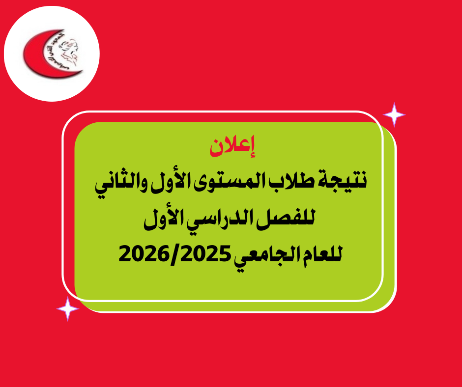 تعلن إدارة المعهد الفني للتمريض جامعة طنطا عن نتيجة طلاب المستوى الأول والثاني للفصل الدراسي الأول للعام الجامعي 2025/2026 م